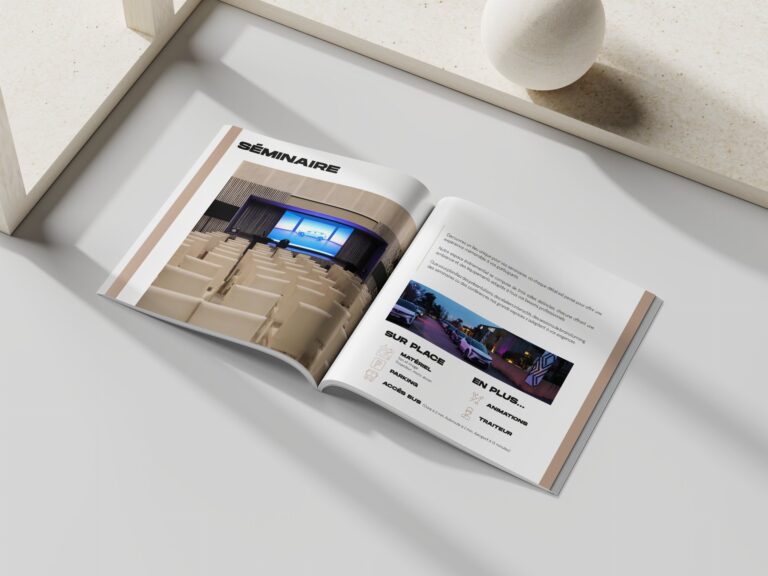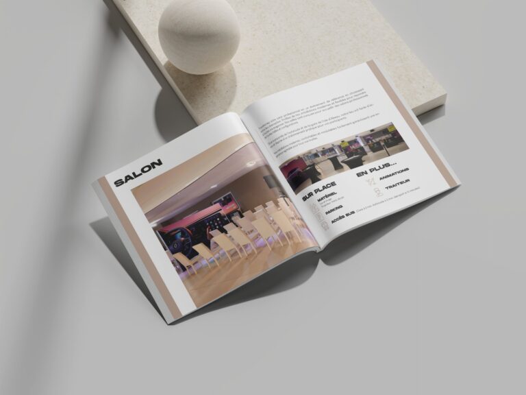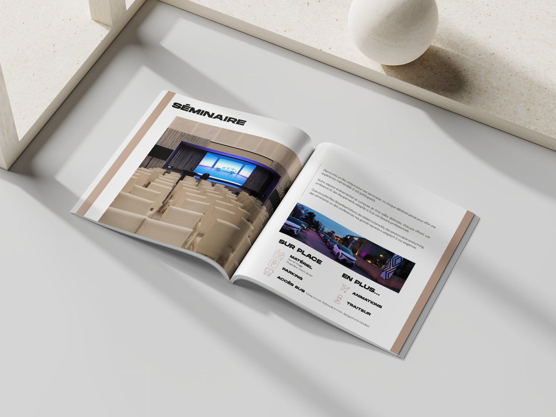 Nous avons travaillé sur un support clair, structuré et élégant, permettant aux entreprises de se projeter facilement dans l’organisation de séminaires, salons, showrooms ou soirées de gala.