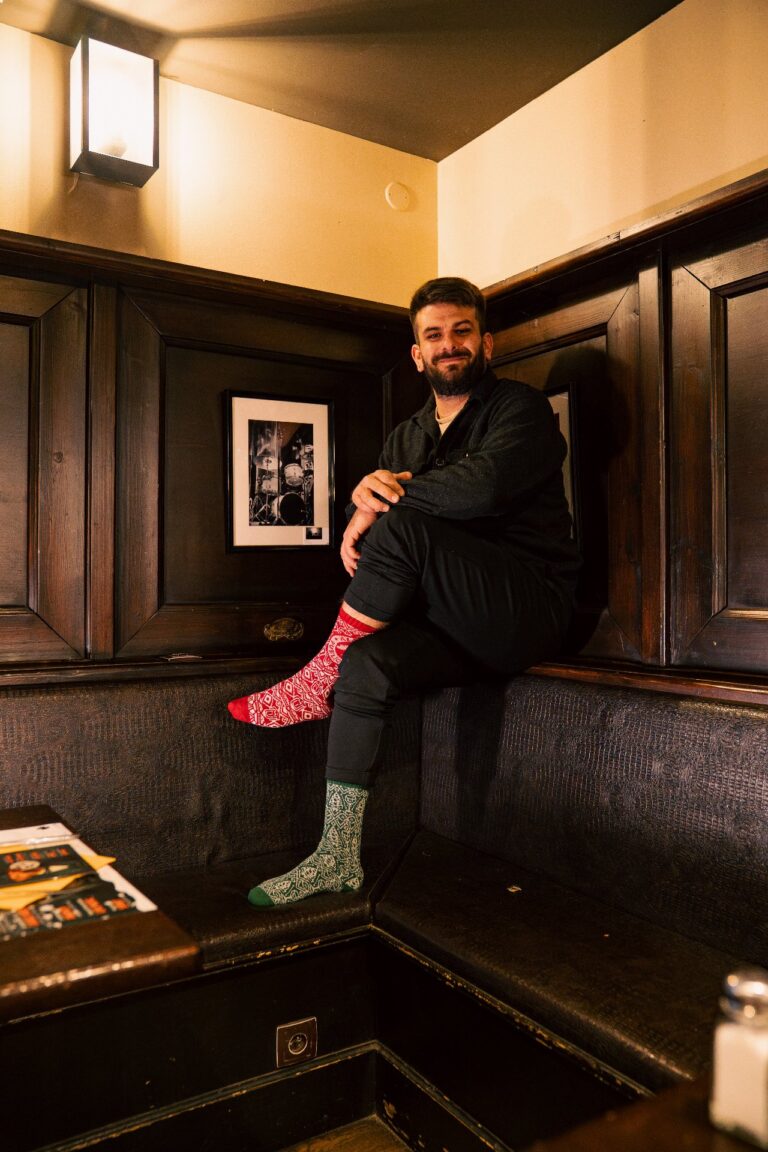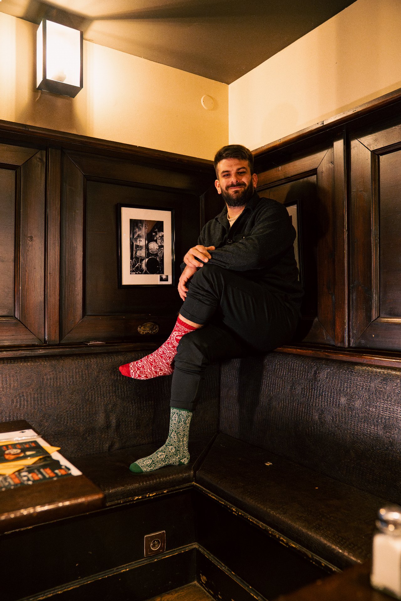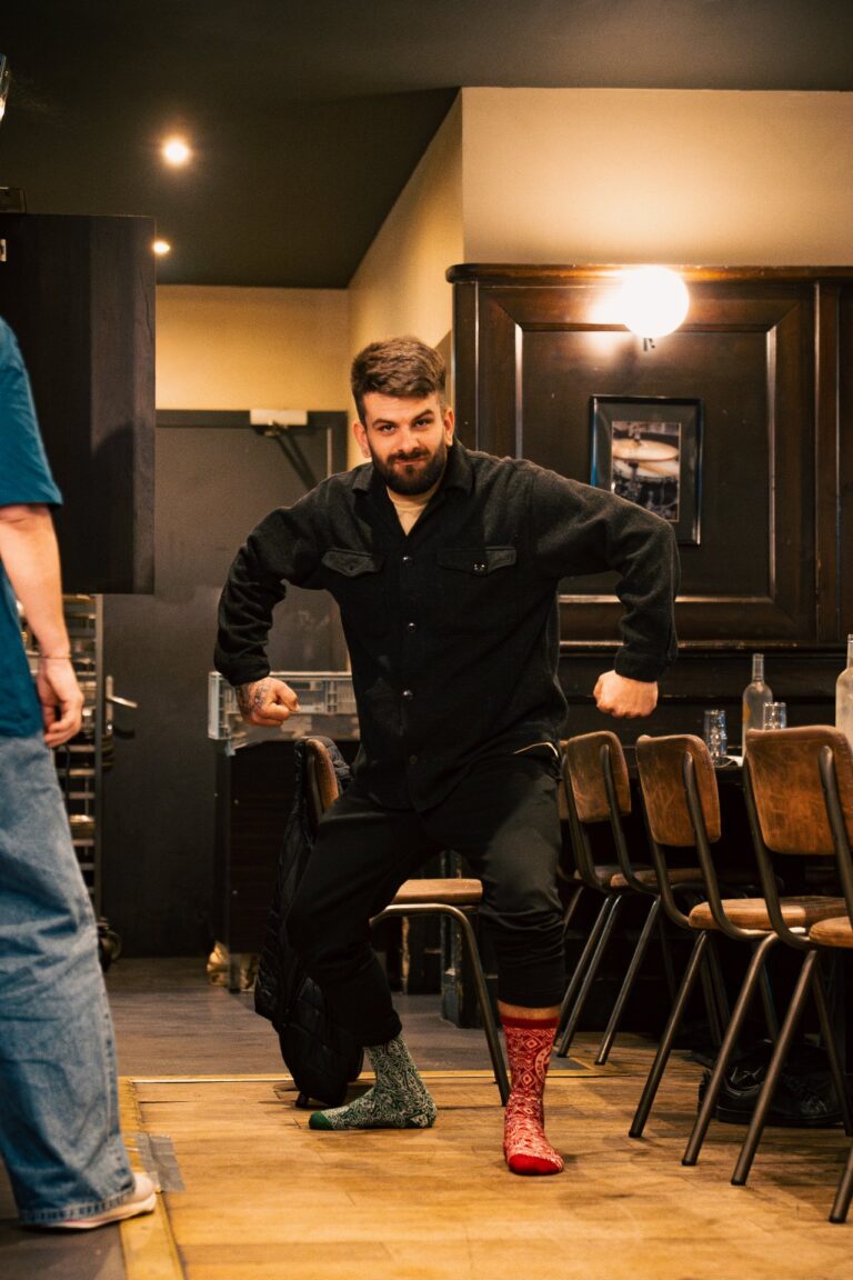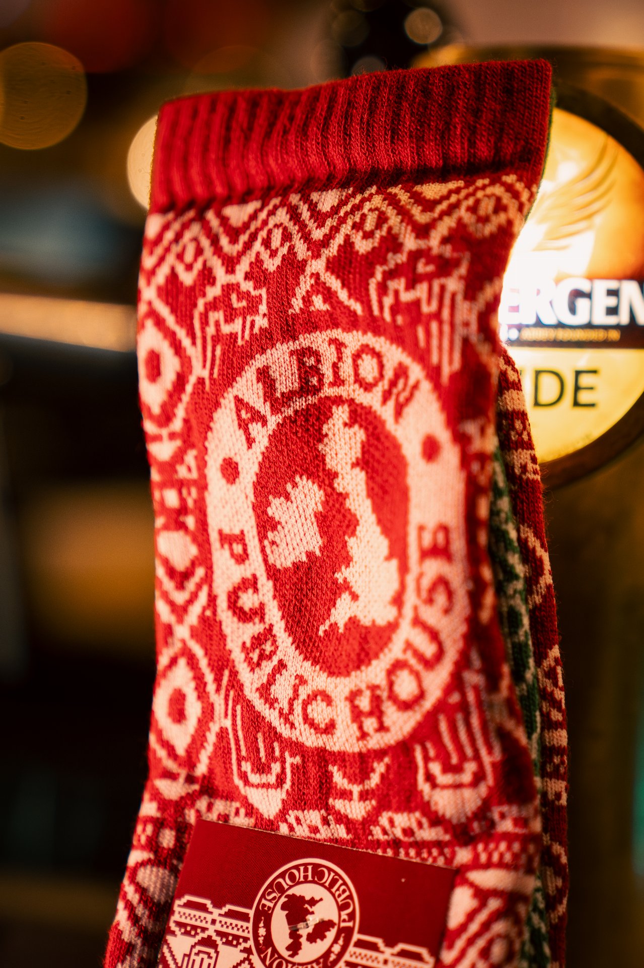 Plus sérieusement, on est partis sur un design de chaussettes de Noël très classique… sauf que si tu t’approches, tu repères plein de petits détails : des éléments emblématiques de chaque resto, glissés dans le motif.