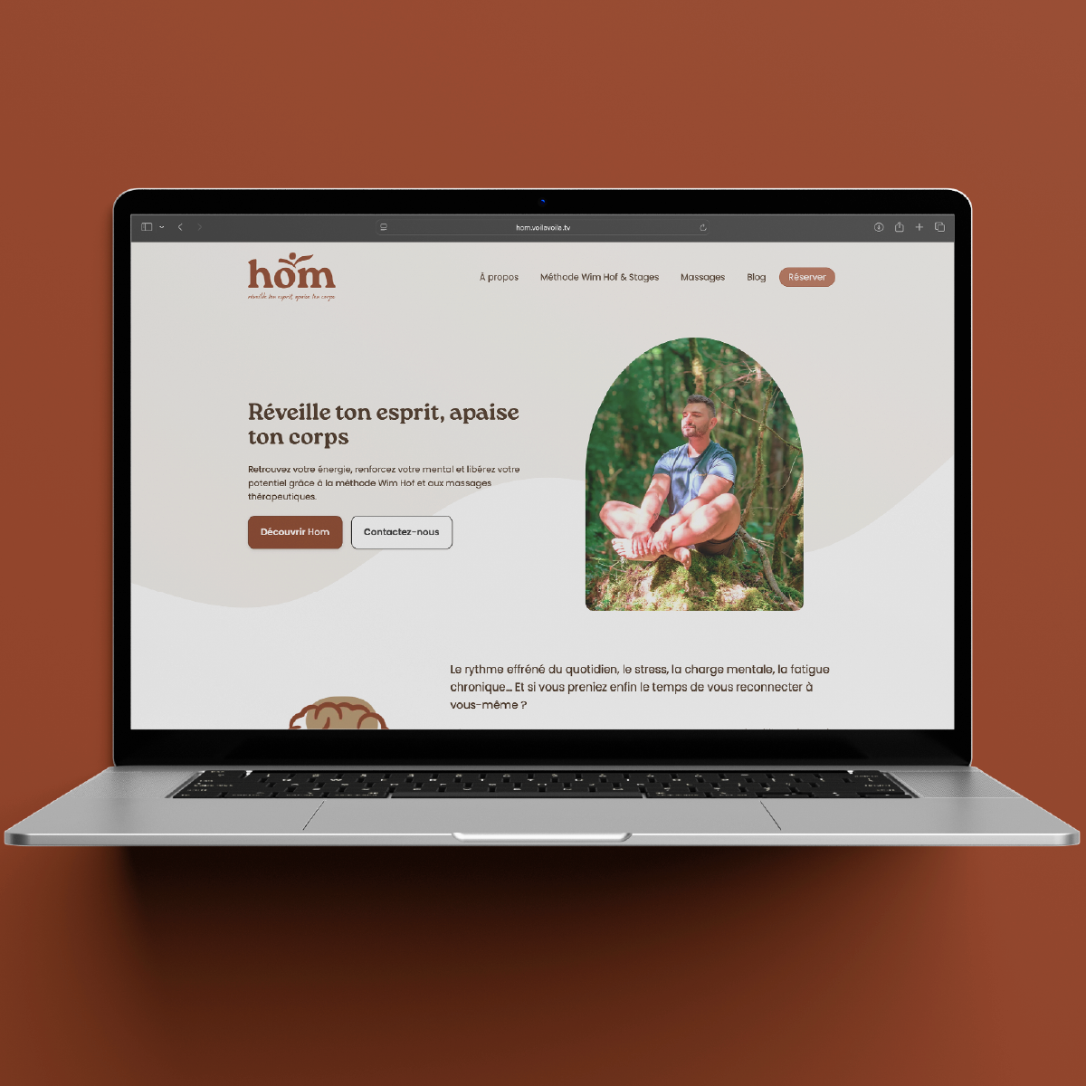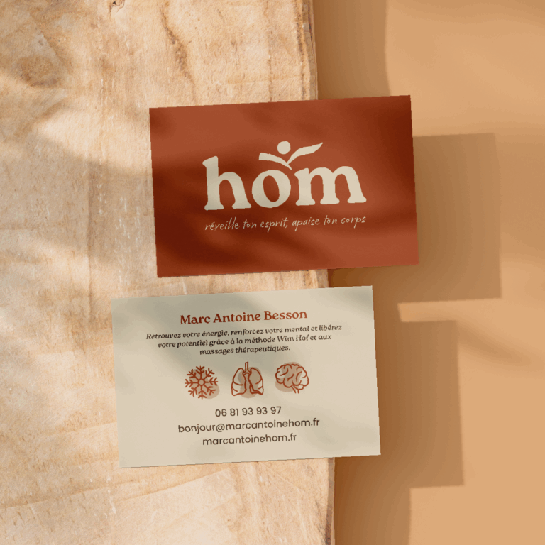 Nous avons accompagné HOM, entreprise spécialisée dans le bien-être (méthode Wim Hof, respiration, froid et massages), dans la création de son identité visuelle complète ainsi que dans la réalisation de son site internet 👉 marcantoinehom.fr. Logo, univers graphique et site web ont été pensés pour refléter les valeurs de la marque.