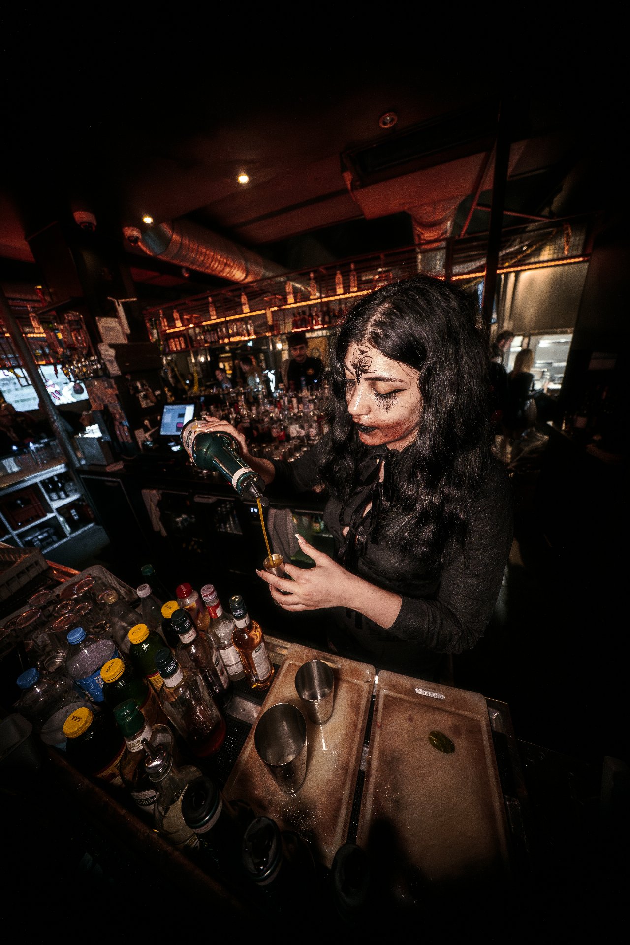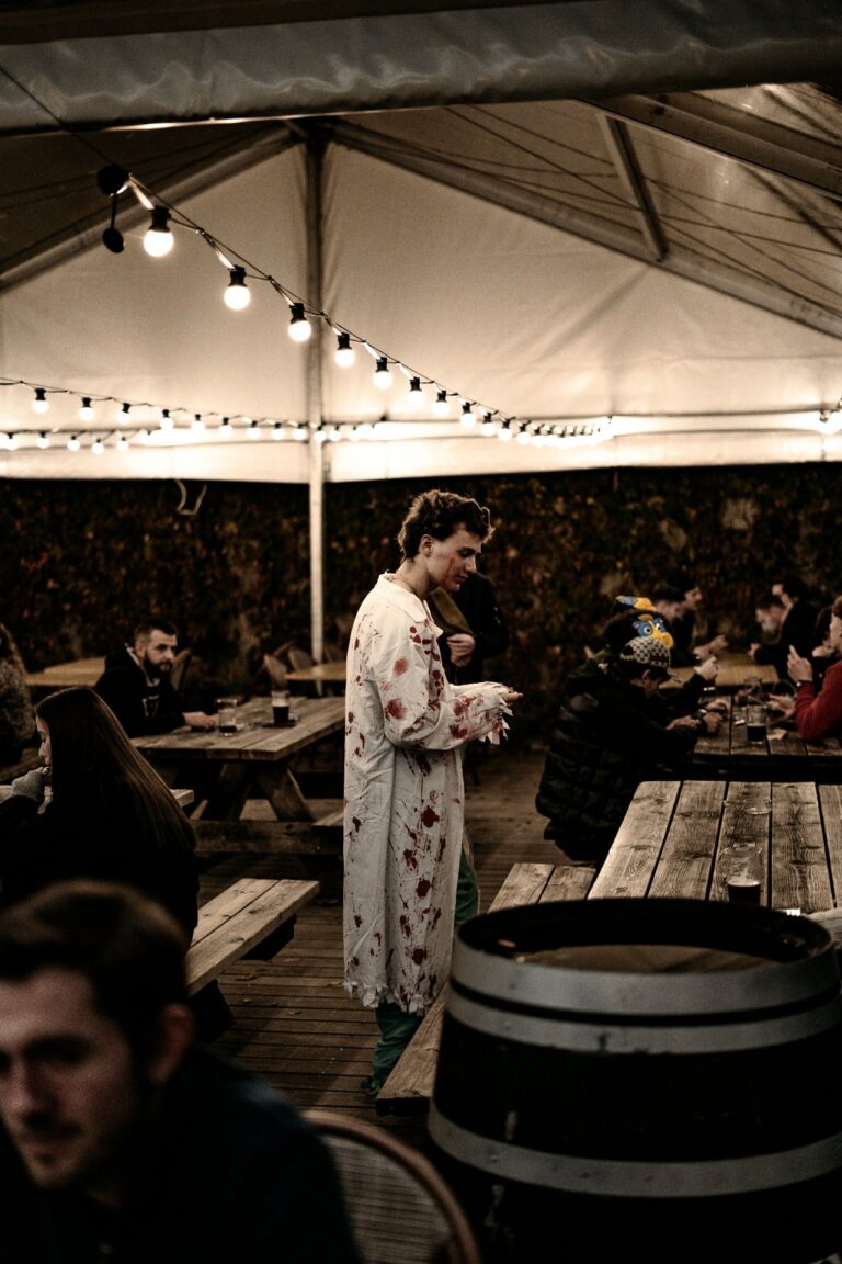 Notre mission ? Capter l’essence d’Halloween, version Albion : des costumes barrés, une déco infernale, un groupe de rock local, et un petit grain de folie.