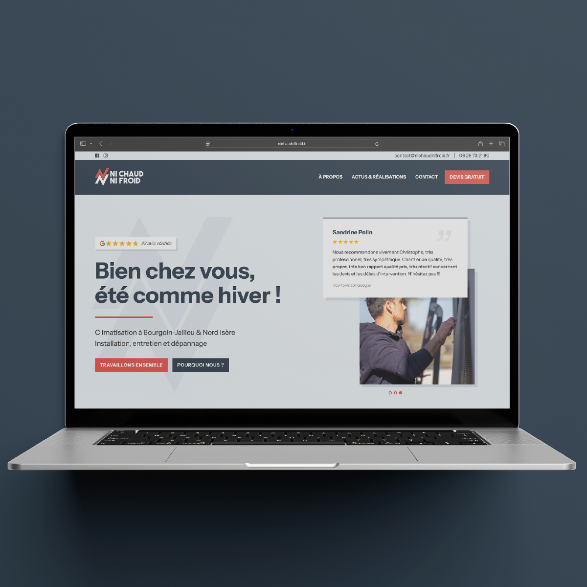 Nous avons accompagné Ni Chaud Ni Froid dans la construction complète de son image de marque : de la création de son identité visuelle (logo, charte graphique), à la conception du site web, en passant par l’organisation d’un Media Day pour capter des contenus forts (photos & vidéos) et la réalisation de ses cartes de visite. Notre mission a été de donner à la marque une identité cohérente, reconnaissable et professionnelle, qui reflète ses valeurs et attire l’attention — tant en ligne que lors de rencontres physiques.
