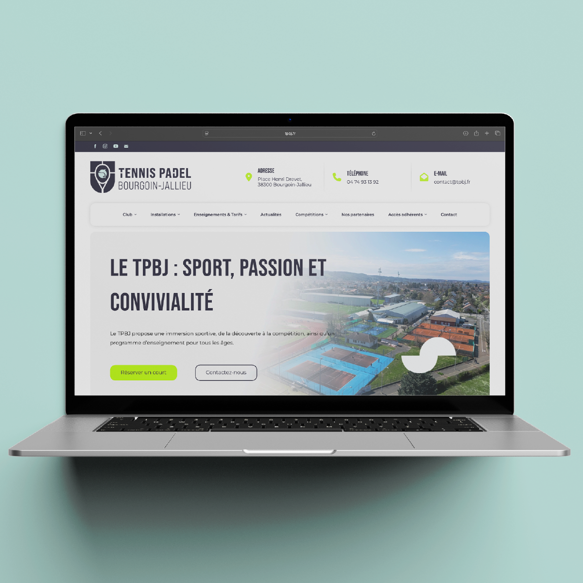 Nous avons accompagné le Tennis Padel Bourgoin-Jallieu (TPBJ) dans la création de son identité visuelle et de son site internet 👉 tpbj.fr. Notre travail a consisté à moderniser leur image à travers un logo et un univers graphique cohérents, tout en développant un site web clair, attractif et facile à mettre à jour. L’objectif : valoriser les infrastructures et les activités du club, et offrir aux adhérents comme aux nouveaux visiteurs un accès simple et pratique à toutes les informations utiles.